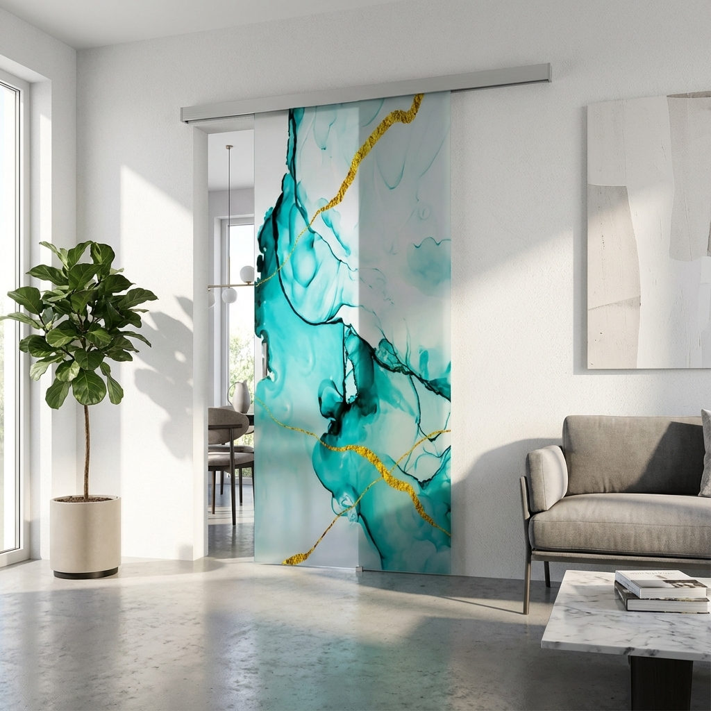 Scorrevoli, sabbiate, satinate e decorate a mano.
