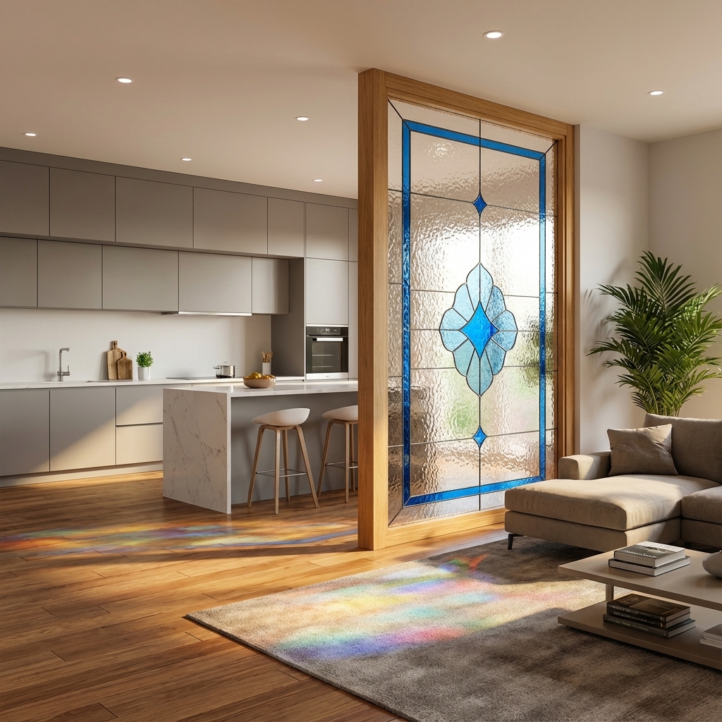 Ogni porta è un’opera artigianale unica, realizzata su misura nel nostro laboratorio di Martellago, Venezia. Vetro stratificato 5+5 mm antisfondamento, decorazioni a mano, murrine veneziane.
